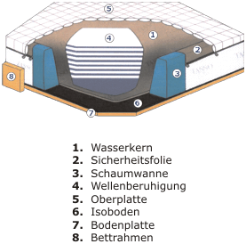 Durch die bequeme Polsterwanne reduziert sich die Liegefläche auf Wasser um ca. 7,5 cm auf jeder Seite
